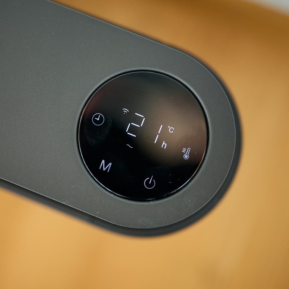 Der Monolith regelt die Wärme mit einer Hysterese. Nähert sich die Raumtemperatur dem gewählten Sollwert, steigt die abgegebene Wärme kurz leicht darüber – in der Praxis um etwa fünf Grad. Danach reduziert das Gerät die Leistung und hält die Temperatur in einem stabilen Bereich um den Sollwert. Das verringert nicht nur die Anzahl der Schaltzyklen, sondern sorgt vor allem für gleichmässige, angenehme Wärme im ganzen Raum.