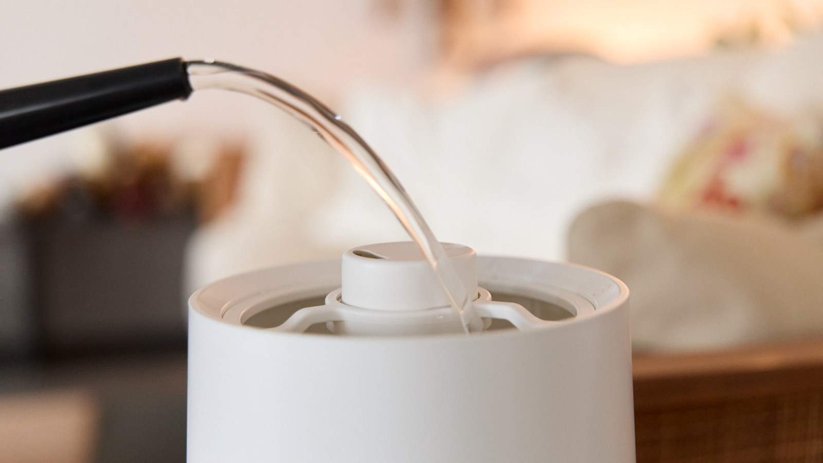 Hinweis: Bei Ultraschallbefeuchtern können stark kalkhaltiges Wasser oder mit Salz enthärtetes Wasser aus Entkalkungsanlagen weisse Ablagerungen auf Möbeln, Böden und Oberflächen verursachen. Wir empfehlen daher ausschliesslich kalkarmes oder destilliertes Wasser.
