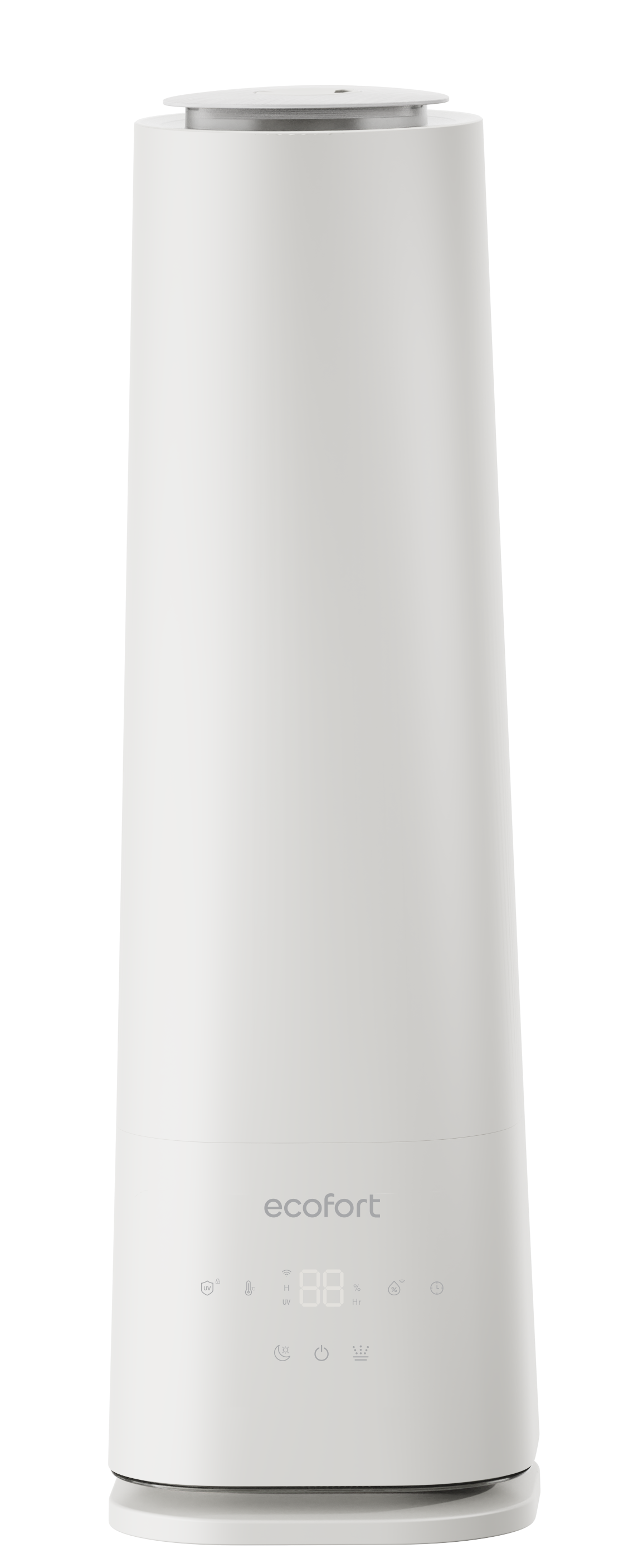 Der ecoQ HumidAir U500 ist ein bodenstehender Ultraschall-Luftbefeuchter mit 11-Liter-Top-Fill-Tank für Wohn-, Büro- und Gemeinschaftsräume bis etwa 70 m². Mit bis zu 500 ml/h Befeuchtungsleistung und seinem rund 70 cm hohen Tower-Design bringt er den Nebel auf eine Höhe von bis zu rund 100 cm, verteilt die Feuchtigkeit gleichmässig im Raum und verhindert Pfützen oder weissen Staub am Boden. Trotz hoher Leistung arbeitet das Gerät ab etwa 26 dB sehr leise und eignet sich damit auch für das Schlafzimmer.